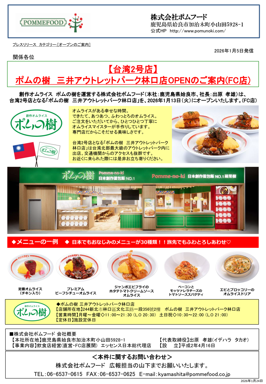 ■プレスリリース:2026年01月05日発信 【台湾2号店】三井アウトレットパーク林口店OPENのご案内(FC店)
